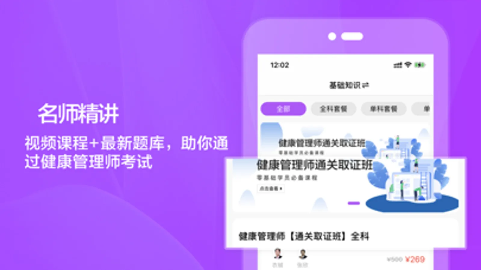 【名师精讲】视频课程+最新题库,助你通过健康管理师考试;