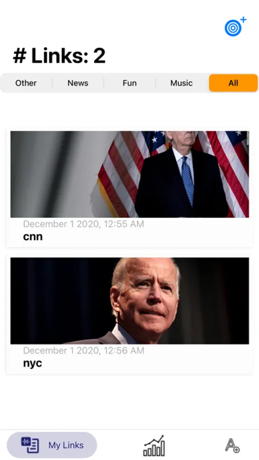 Links app, Where you can save your favorite links of Articles, News, Music, Funny Videos and more. You can go directly from the App to your saved links.
