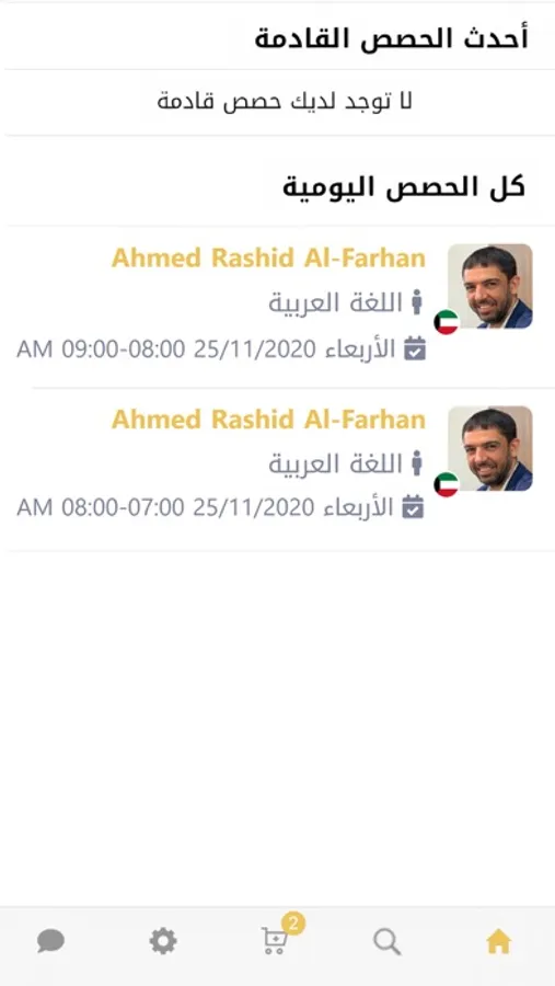 6- يستطيع الطالب متابعة جدول حصصة الدراسية في الشاشة الرئيسية ومشاهدة أقرب ثلاث حصص دراسية له.