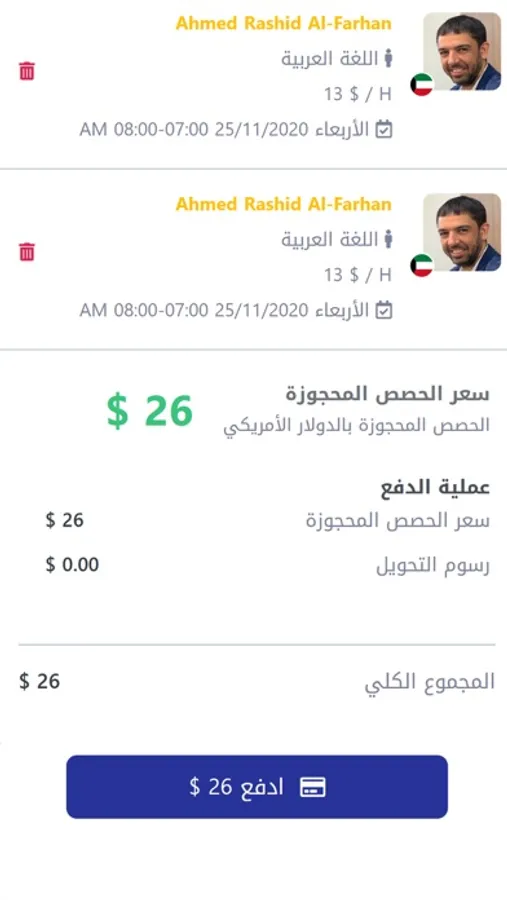 5- يستطيع الطالب تصفية الحصص الموجودة في السلة وحذف مالايلزم منها ثم الدفع بطريقة سهلة وآمنة.