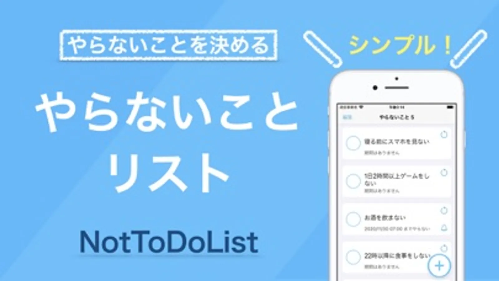 このアプリはやらないことを決めて管理できるアプリです。やることがたくさんある場合や、やらなくていいことがある場合はこのアプリを使ってやらないことを決めましょう!やらないことを決めることで本当にやりたいことに集中できると思います。