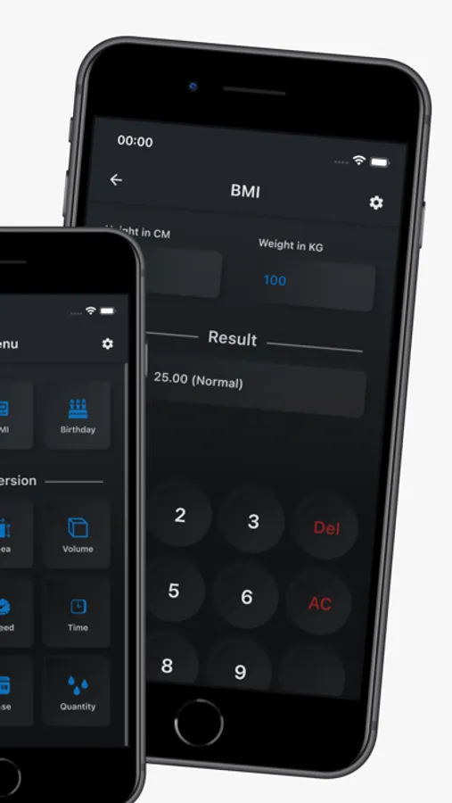 - Calculate a person's BMI (Body Mass Index) with the touch of a button.