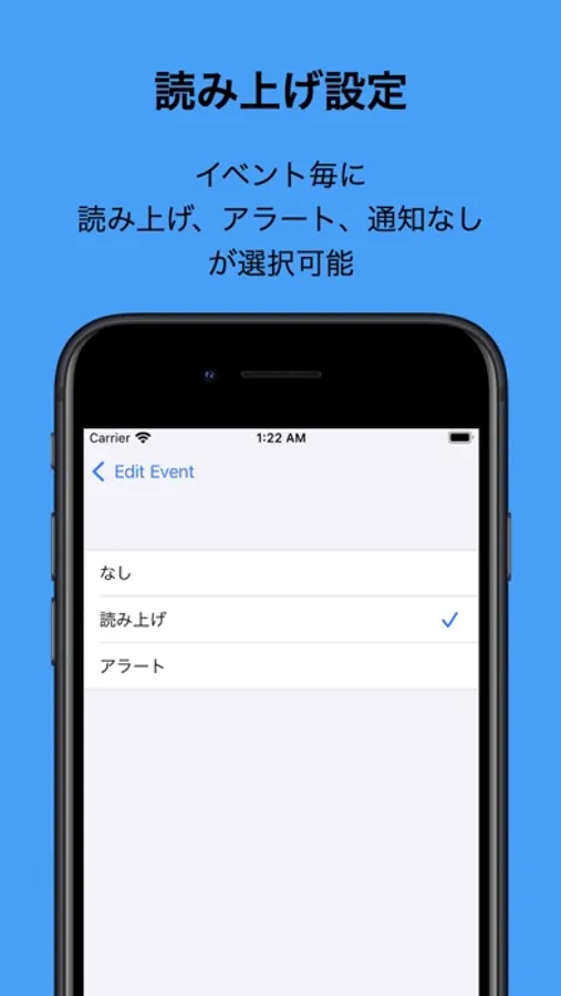 読み上げだけでなく、通知音や表示のみへの切り替えも個別に設定可能です。