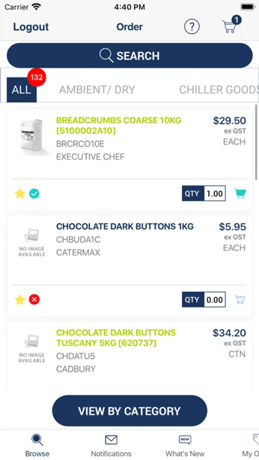 View and order directly from your mobile or tablet the complete product range with product images displayed on selected items.