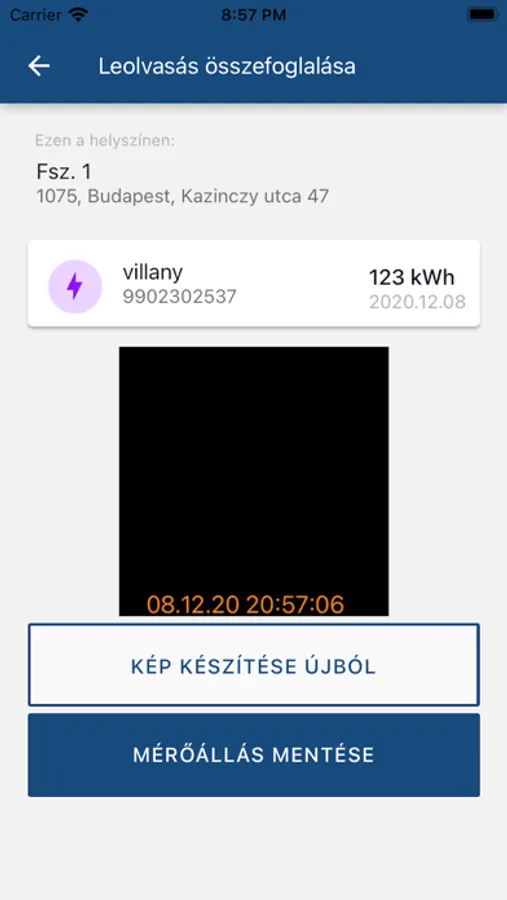 Minden leolvasás fényképes bizonylatolással ellátott, és automatikusan rögzítésre kerül a belső adatbázisban.