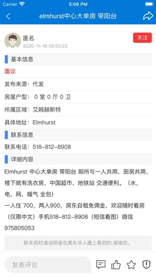 一个专注于美东华人信息交流的移动平台,在这里,分享你的所见所得.更有新闻资讯,房屋出租,二手市场,等生活服务平台因有尽有