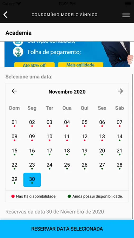 Consulte a disponibilidade e reserve/cancele sua área de lazer.