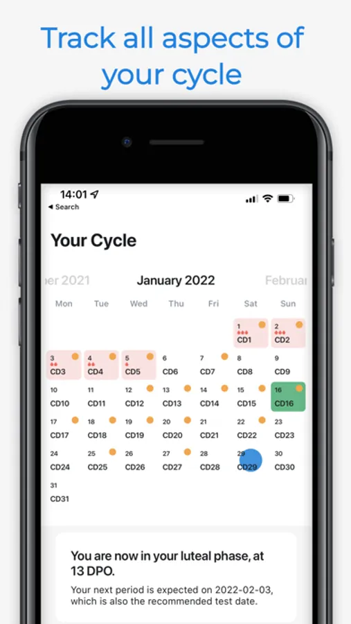 - Track your cycle and predict ovulation if you are trying to conceive naturally
