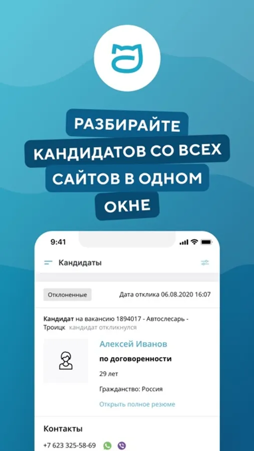 Отклики кандидатов будут приходить в приложение и вам останется только выбрать лучшего кандидата.
