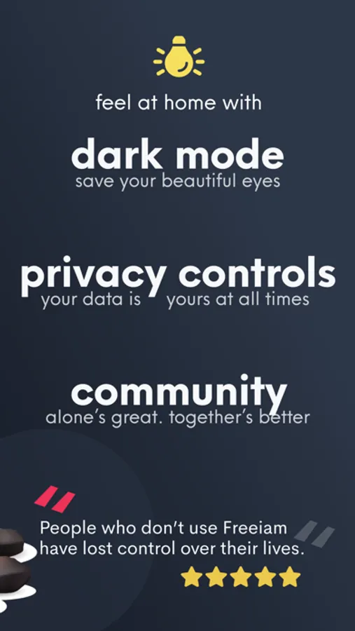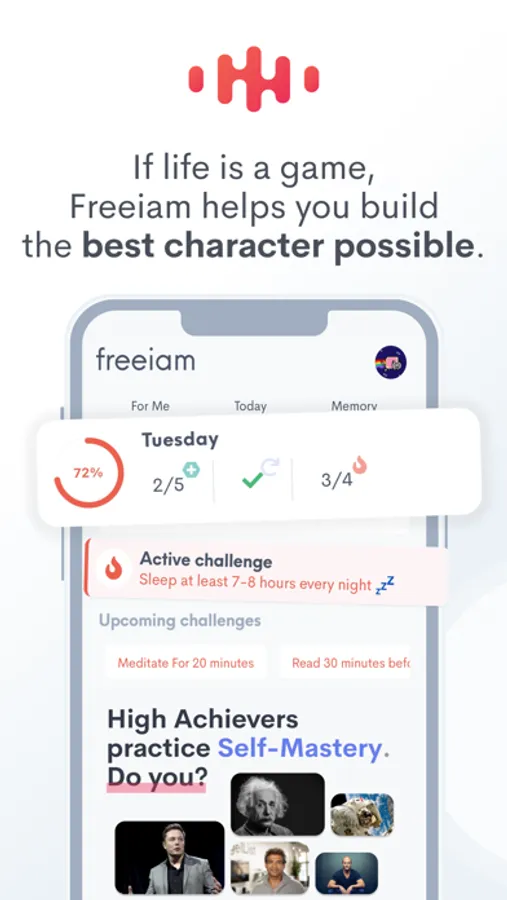 Freeiam is a mobile app and social movement that allows you to reconstruct and reimagine your reality. With 1 in 3 people saying they are unhappy with their life situation, the time is well overdue to reject the societal constraints, start pushing back on existing standards, and creating our own values. Freeiam provides you a system that will feed your self-actualization and challenge you to take the actions necessary to build the best life possible.