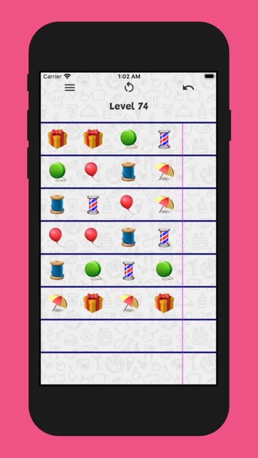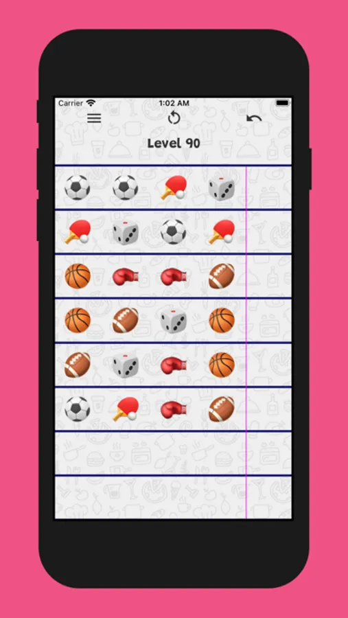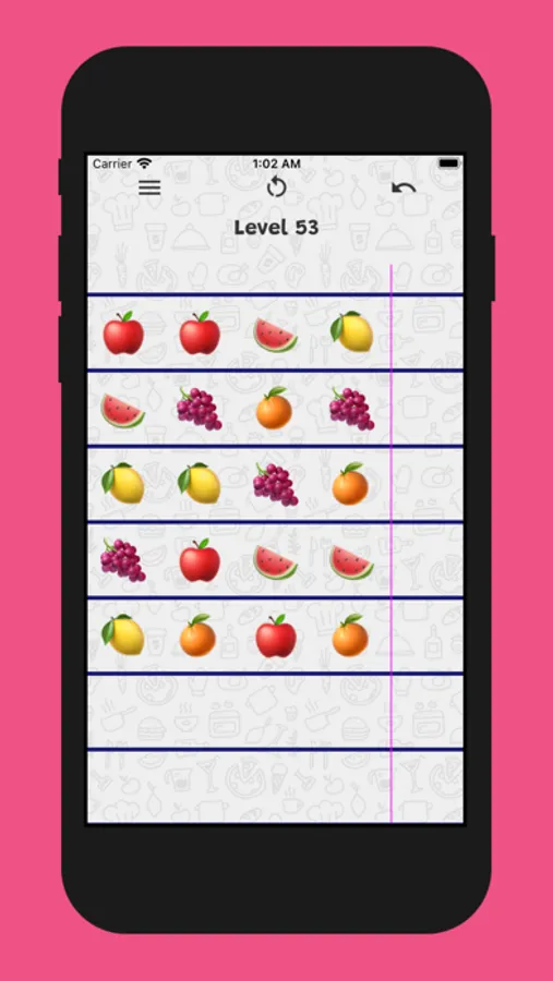 Sort the items on the board until all the lines contain the same type of items. All you need is one finger!