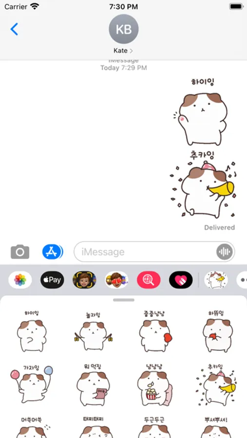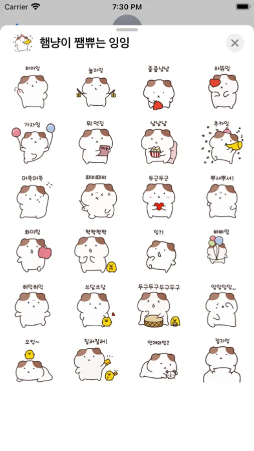 언제가 애교넘치고 밝은 쨈쀼와 함께 iMessage 스티커로 채팅하고 다양한 표현하세요~