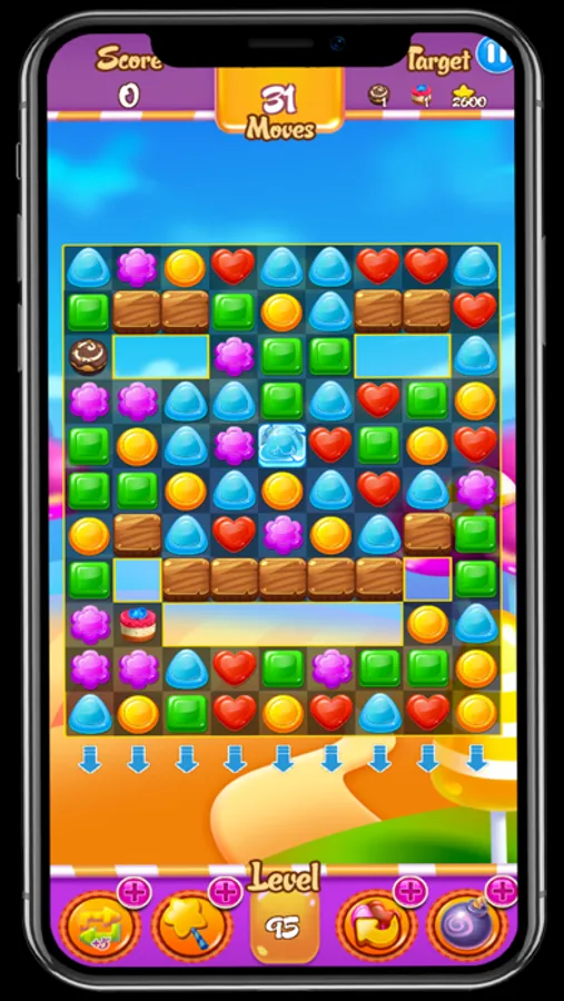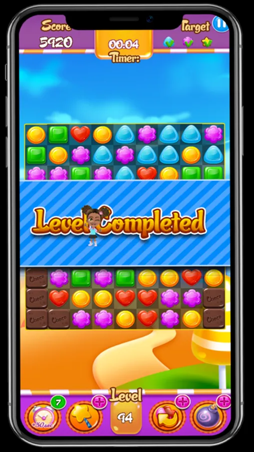 Start playing CandyBombz and enjoy the sweet treats! Swap and match 3 or more of identical colorful candies to explode. Just select the gold color markers to start your level.