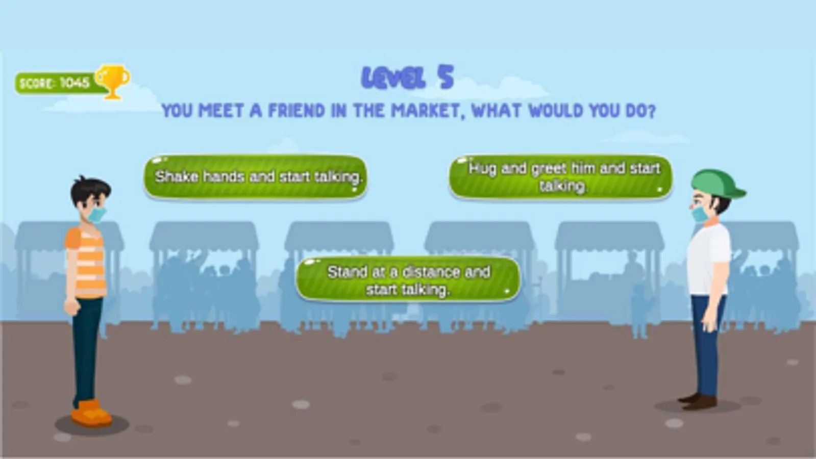 You are presented with various situations and you make decisions to cross levels. Choose the correct options to progress. Pay attention to what "HudHud" says. He will help you win the game.