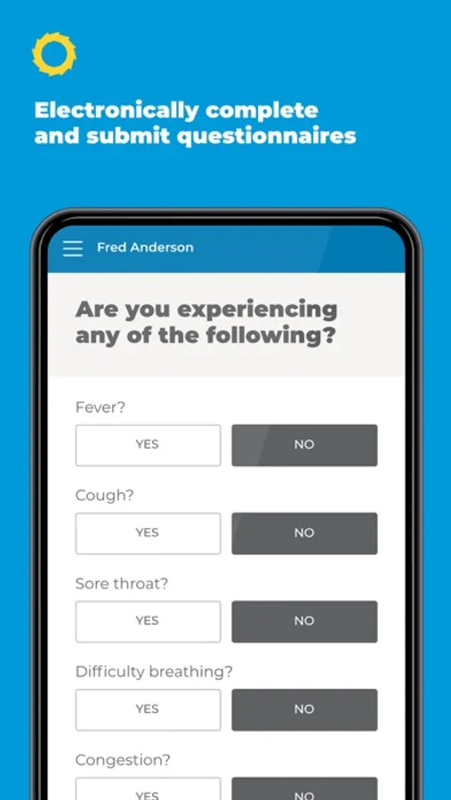 With the app, employees can securely connect to your organization’s employee health portal to electronically complete and submit questionnaires and manage work status, including automated receipt of cleared-to-work approval screen based on questionnaire responses.