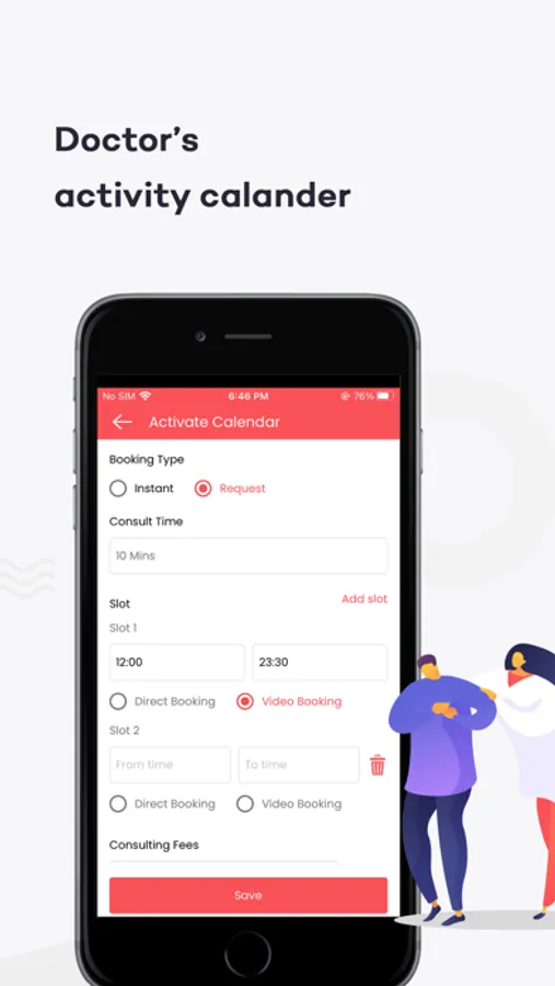 Availability setting feature that allows the doctors to set their availability details clearly such as consultation timings, direct visit booking/video booking details, and so on.