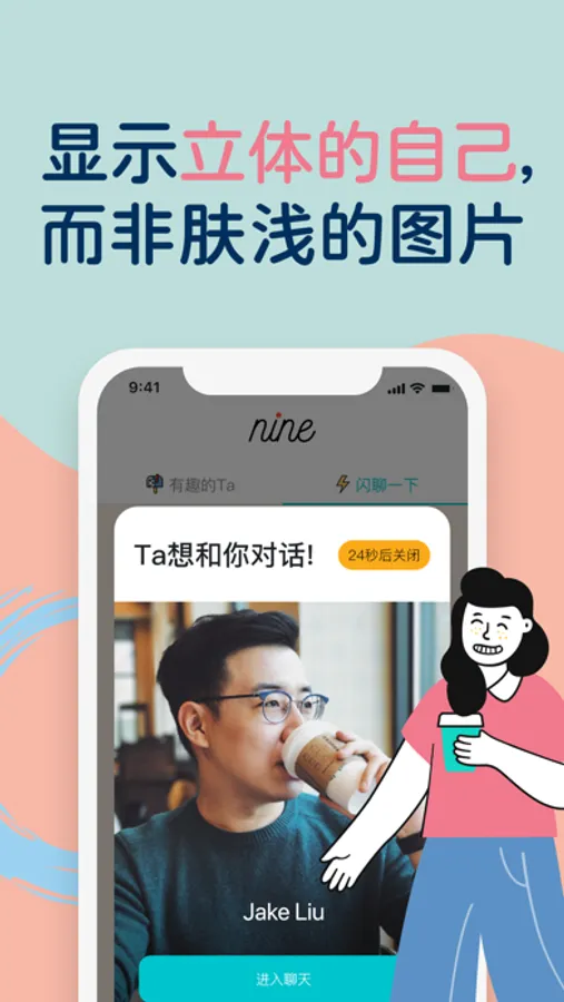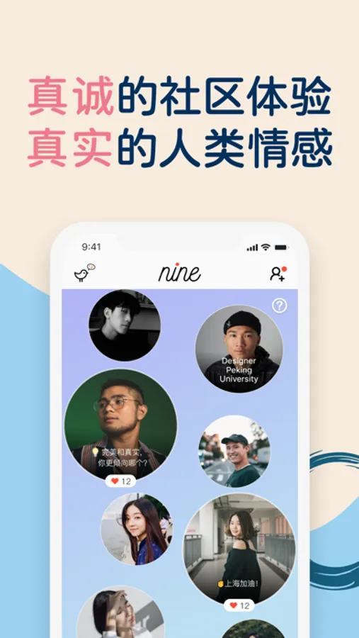 Nine帮助展示真实的你,同时提供许多有趣和有意义的话题帮助你们互相了解;