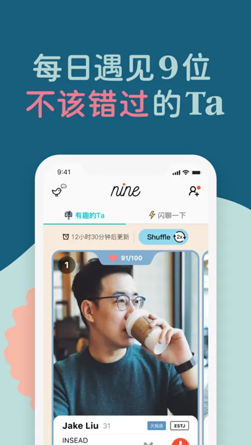 通过每日每天推荐9位有趣的ta与你相识,你可以在每一位的筛选上,多花点时间,你来决定ta是朋友还是爱情;