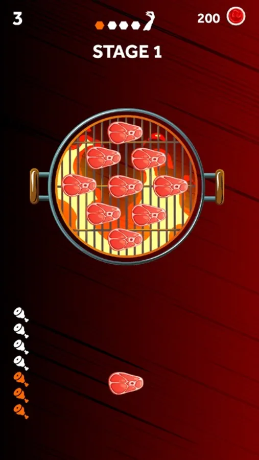 Throw the meat into the grill . Slash the ketchup and unlock new Meat . Each 5th stage is defended by a boss - beat them to get exclusive meat!