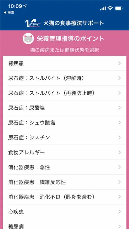 このアプリでは、食事療法における栄養管理指導のポイントとなる「重要な栄養特性」と「見直し時期」を確認することができます。また対応する製品リストから、当センターのホームページにもアクセスできます(日々の診療で最適な療法食選びに、適応となる疾病、栄養特性、使用上の注意事項等の登録製品情報がご参照いただけます)。また、ちょっと便利な「栄養補給量」の計算機能も搭載。犬猫の体重、健康状態、フードの代謝エネルギーを入力すると、1日当りの必要量(エネルギー量・食事量・水分量)が計算でき、飼い主への食事指導や入院管理に役立ちます。なお、上記目的以外でのアプリのご利用は推奨いたしません。また本アプリの利用者が獣医療関係者であることを確認するため、利用開始時に「所属(動物病院名)」、「所在地(都道府県名)、「職種」の入力をお願いしております。
