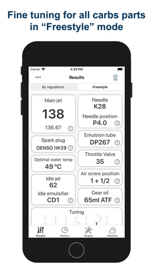 • Two different tuning modes: "By regulations" and "Freestyle"!