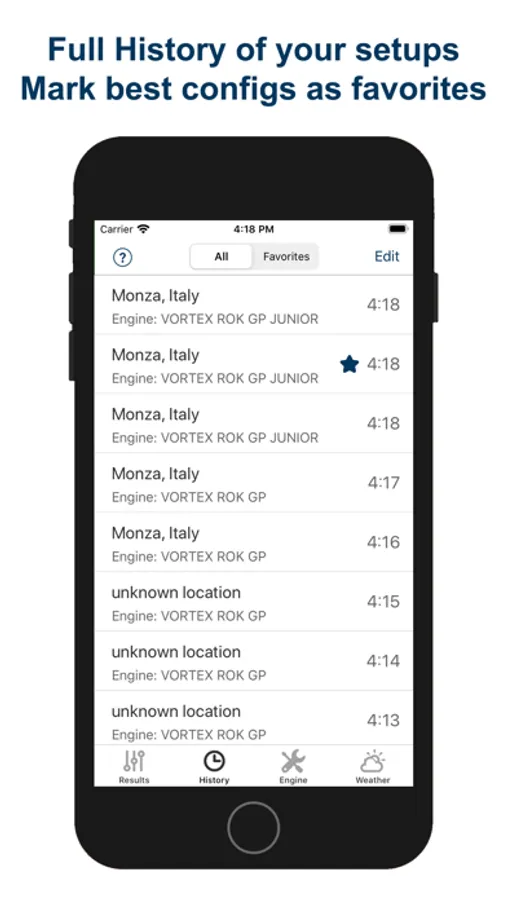 • History: This tab contains the history of all carburetor configs. This tab also contains your favorite carburetor configs.