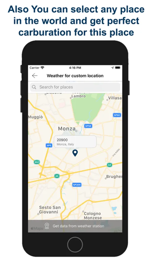 • If you don't want to share your location, you can manually select any place in the world, the carburetor setups will be adapted for this place
