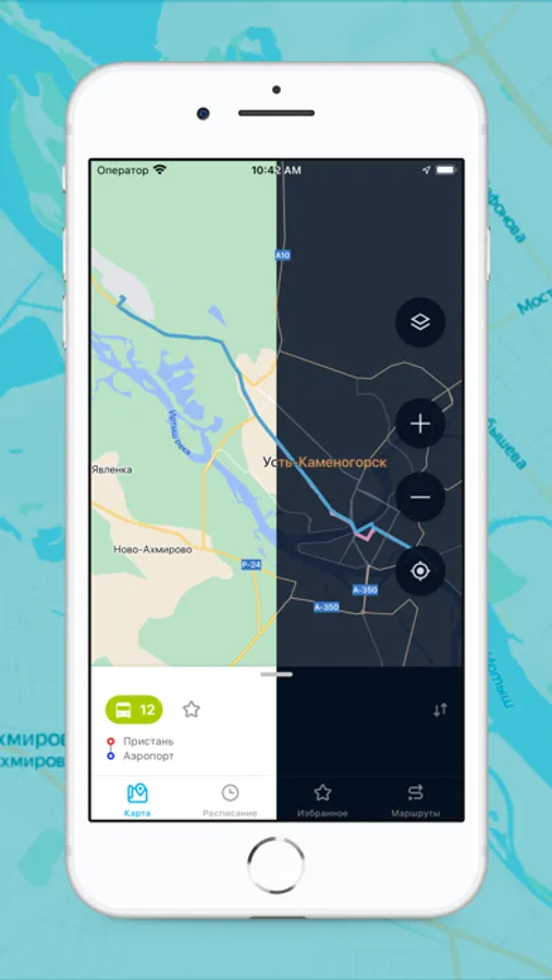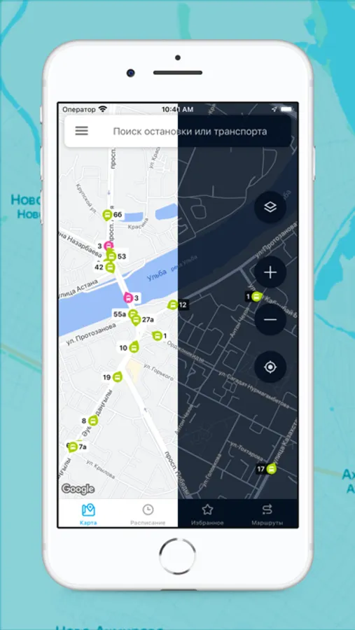 All transport in your city is displayed on the map in real time. Watch your bus, tram or minibus. Now you know exactly where your bus is.