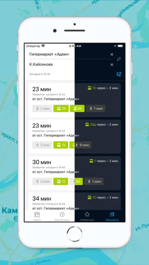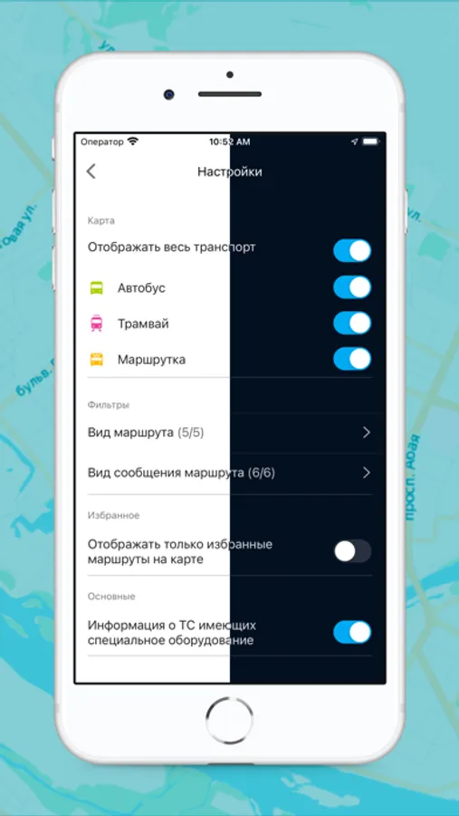 Want to see only certain modes of transport on the map? Choose the ones you need in the Settings. Also, in Settings, you can enable the display of only important routes that are added to Favorites. Customize the application as convenient as possible.