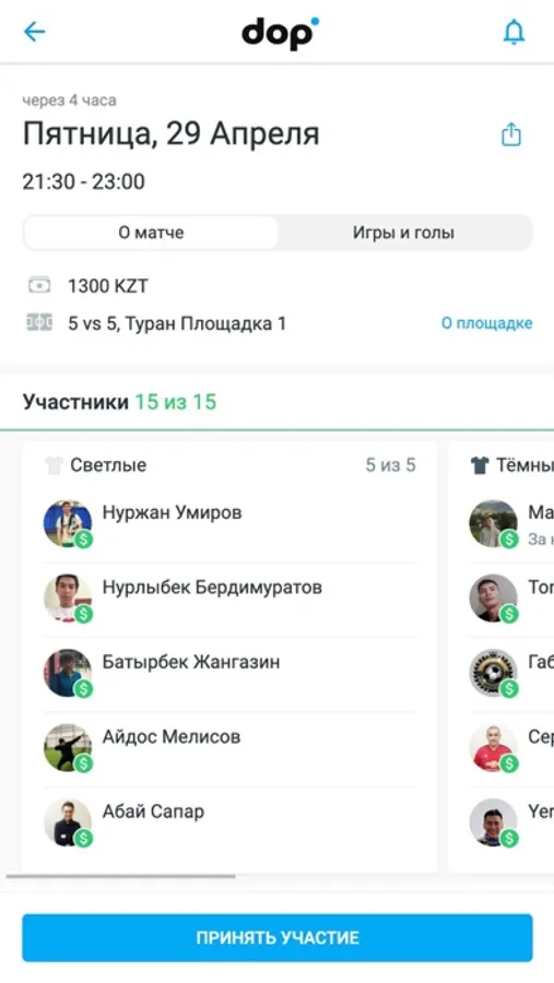 - найти с кем поиграть в футбол даже если ты один, без команды