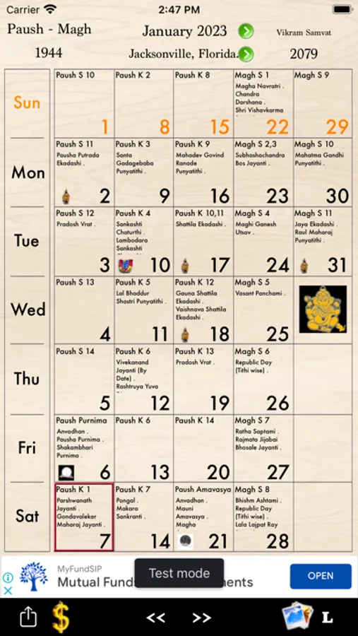 - Calendar for 91 Indian Cities and 235 World wide cities.