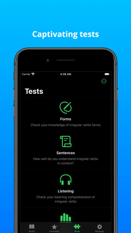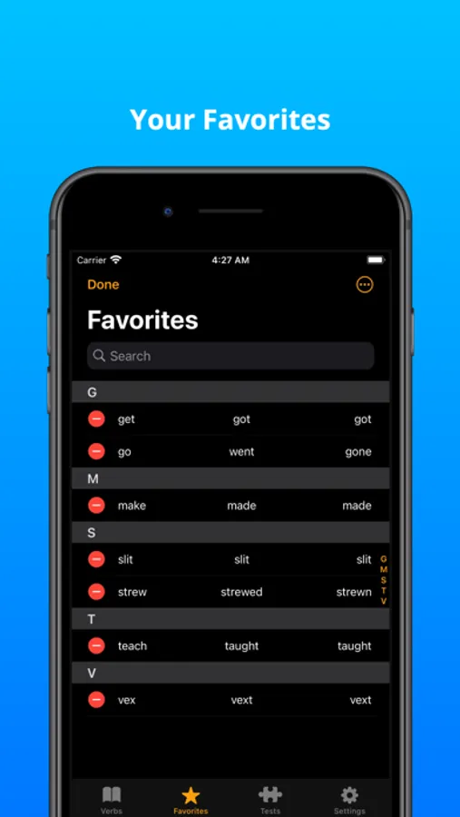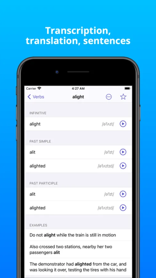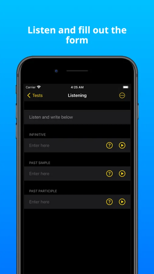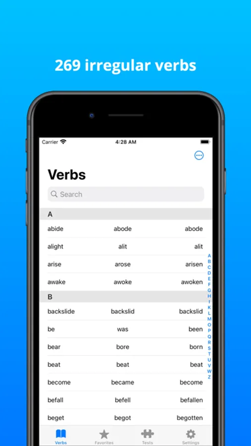 Are dull tables with irregular verbs already starting to dream? Tired of cramming? Do you write them out in a notebook or suffer with flash cards? Forget about these problems and make your life easier — download the Irregulars app!