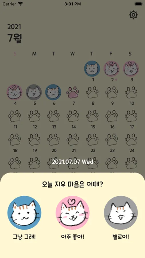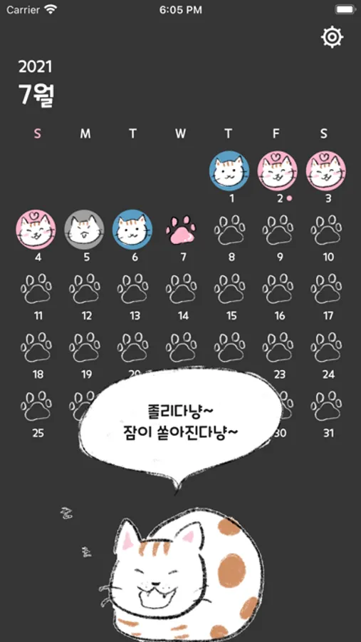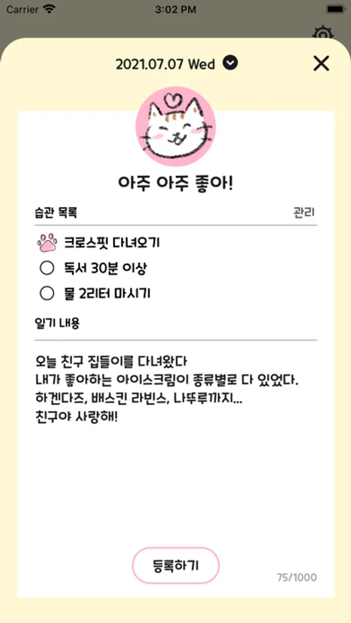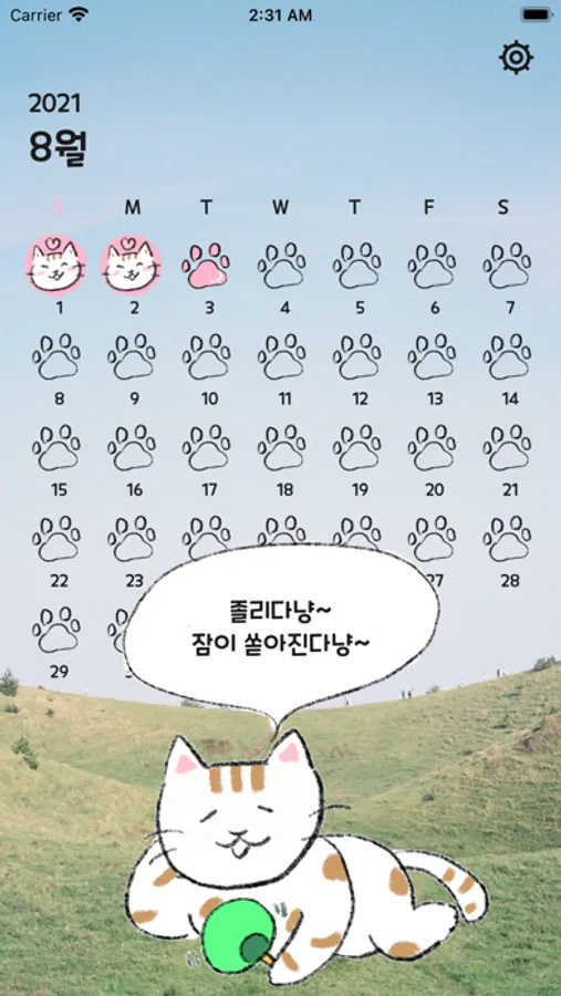 "오늘 하루 행복했냥? 행복한 일이 있었으면 기록해보라옹"