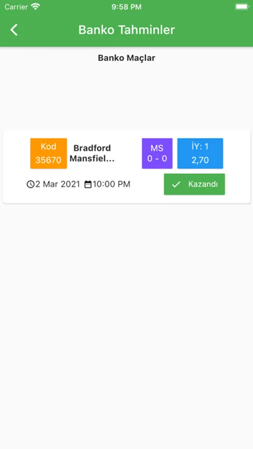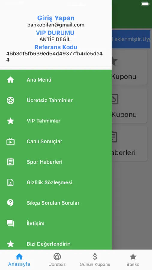 uygulama içi satın alma ile; günün bankosu, sistem maçları ve günün kuponu kısmına tam erişim sağlarsınız.