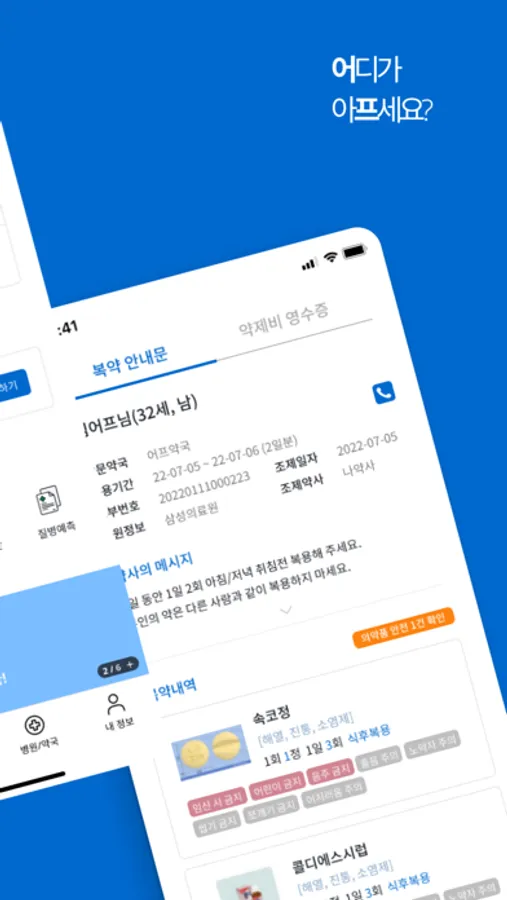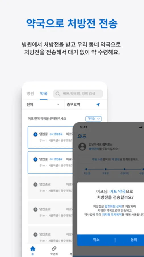 병원에서 받은 처방전을 우리 동네 약국으로 보내요.