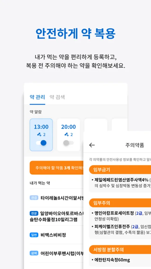 어프가 주의사항을 먼저 확인해서 안전한 약 복용을 도울게요.
