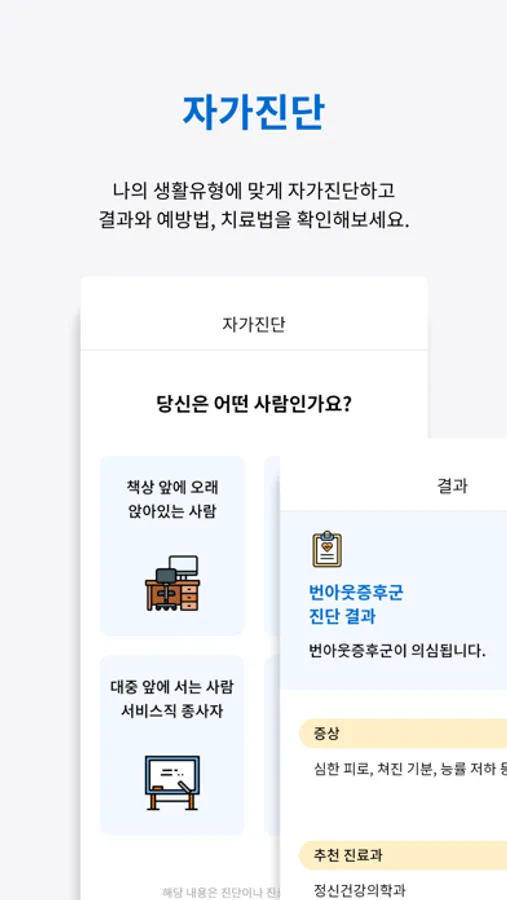 자가진단 결과와 예방법, 치료법 등의 나만의 정보도 받아보세요.