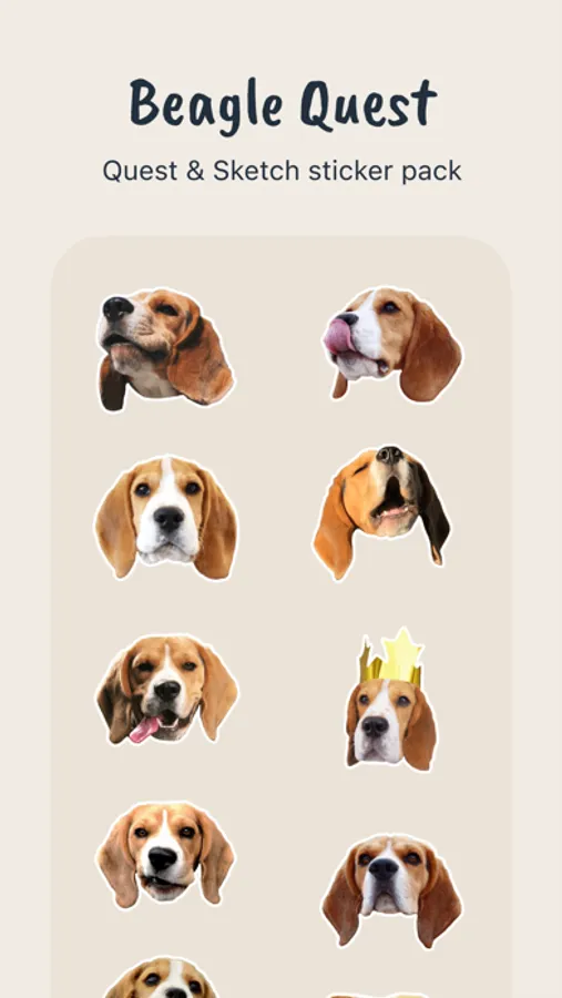 Enhance your messaging experience by adding some cute and funny Beagle Quest & Sketch stickers. Send them to your beagle and dog loving friends to make your messages 100% more adorable.