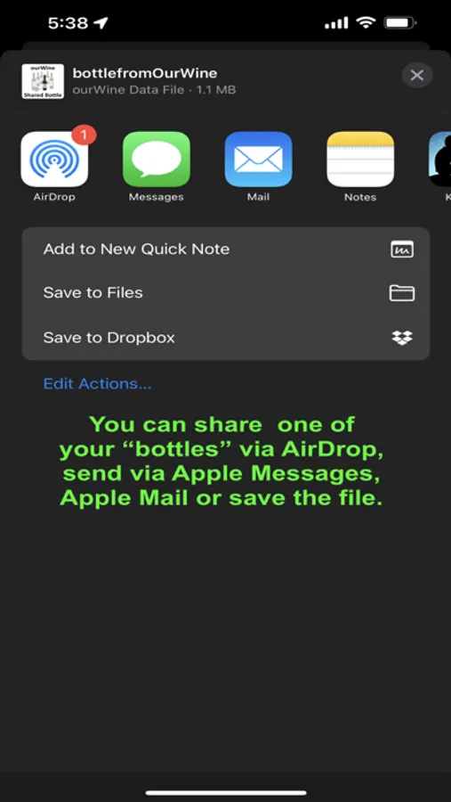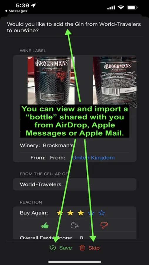 Send details of your favorite bottles to friends and family from your iOS or macOS devices and computers using Apple Messages, Apple Mail and AirDrop.