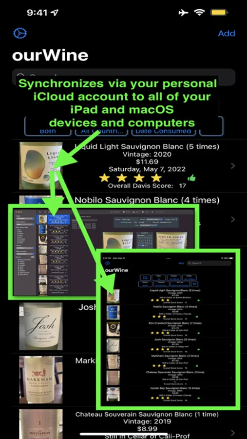 ourWine is available as a universal purchase, so you can purchase it one time and have it on all your iOS iPhones and iPads, as well as all your macOS laptops and desktop computers. (Geeky detail: the app is native on each device, and the Universal purchase includes native iOS 16.2 and above, as well as native Apple Silicon and Intel versions for macOS 13.1 and above).