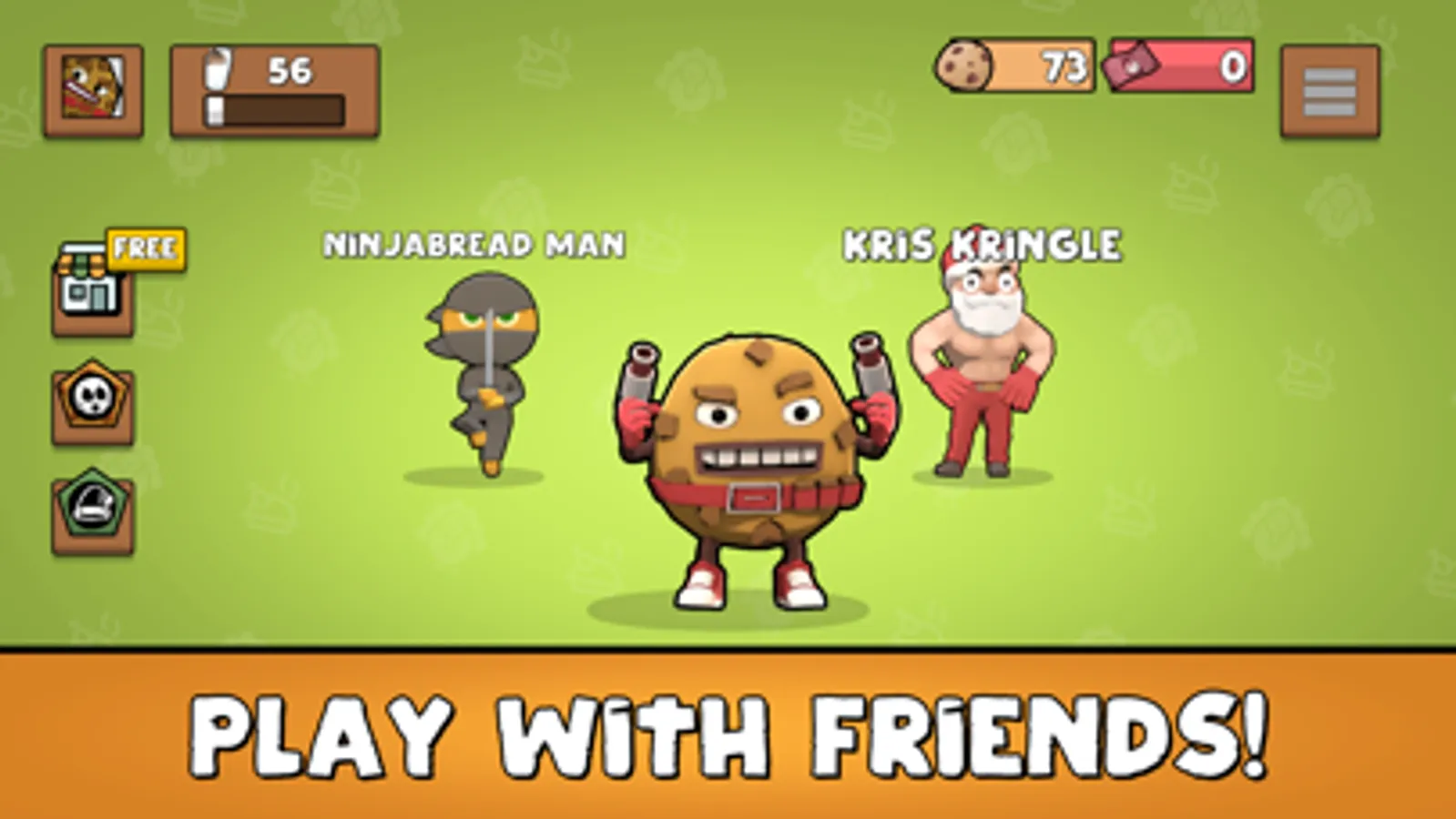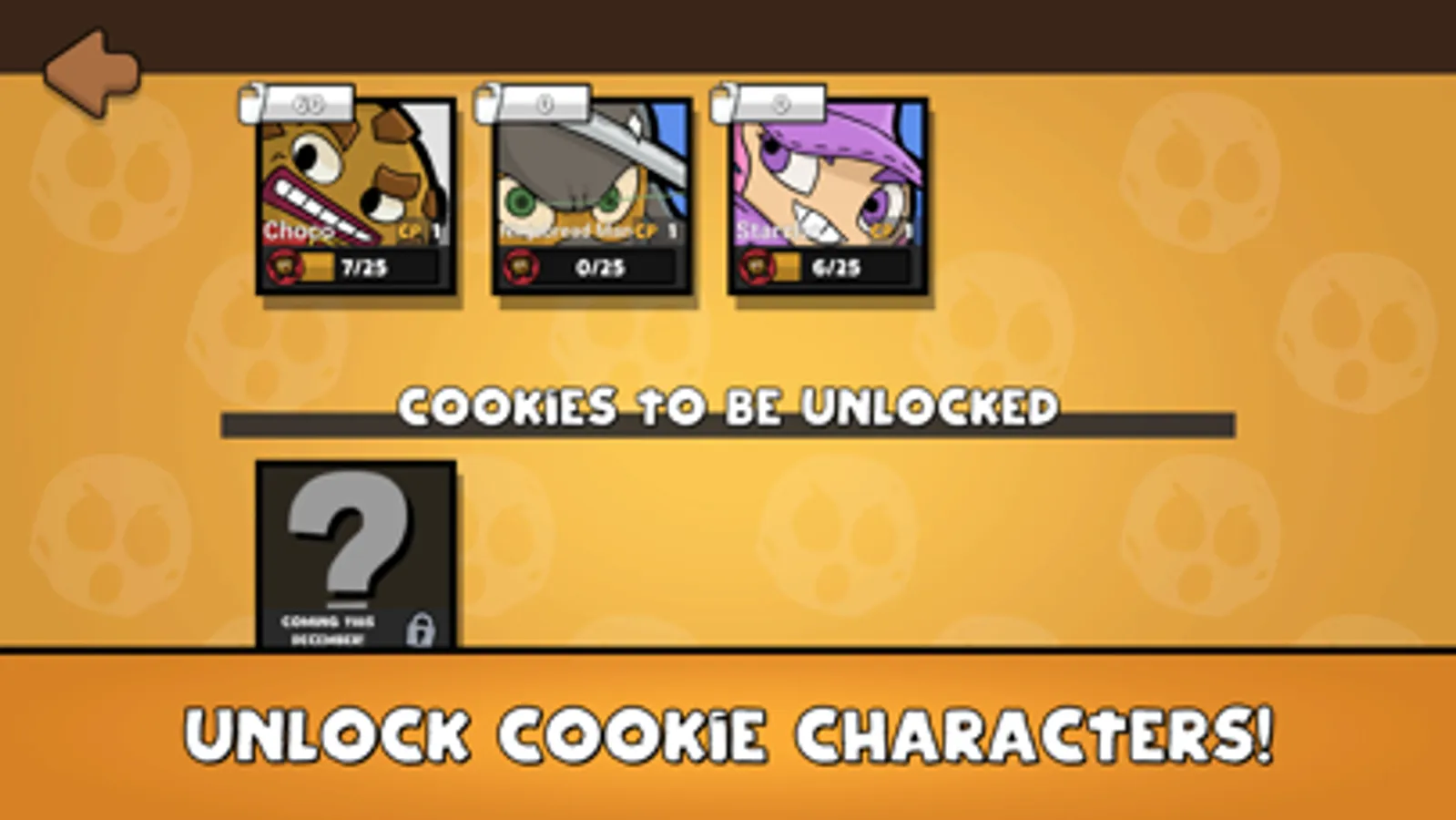 Unlock different cookie and holiday characters as you play. Each character can be upgraded for mega damage!