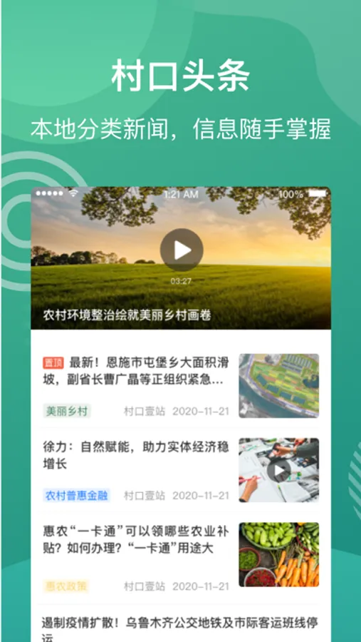 村口壹站由江苏村口科技有限公司设计开发及运营。村口是一个村民家门口的综合便民服务平台,为村民提供乡村特色资讯内容、充值缴费、快递物流等综合便民服务。“村口壹站”以美丽乡村为愿景,为村民提供提供乡村特色的多元服务,让乡村生活更美好!