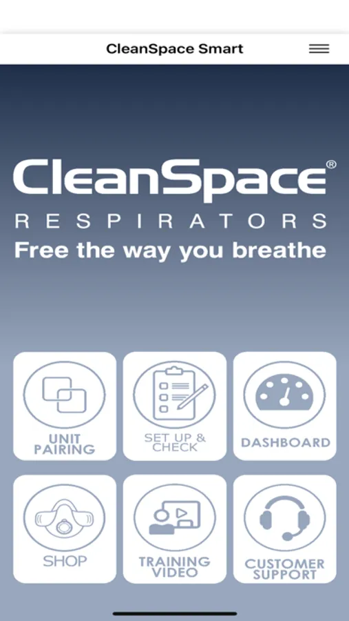 CleanSpace Smart connects CleanSpace Respirator power unit over Bluetooth. The app can check functionality of the unit, mask fit check, monitor usage. App also includes knowledge base videos for user