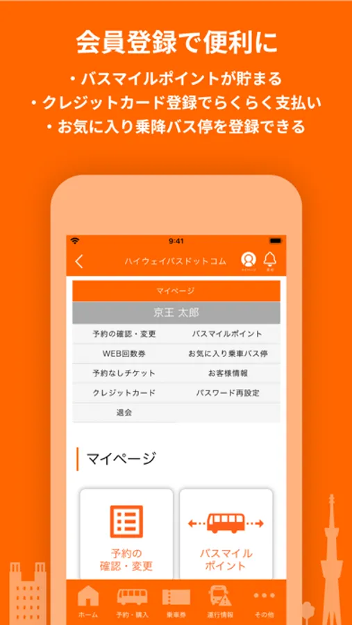 ・路線や発着地からの予約、いつものバスから予約など、初心者からリピーターまで簡単に予約できるアプリです。