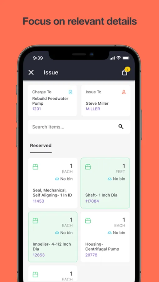 Inventory Management: Provides storeroom users easy with the ability to issue, return, transfer, receive, count (including count books), and browse inventory, including barcode label printing and scanning, and managing item master images.