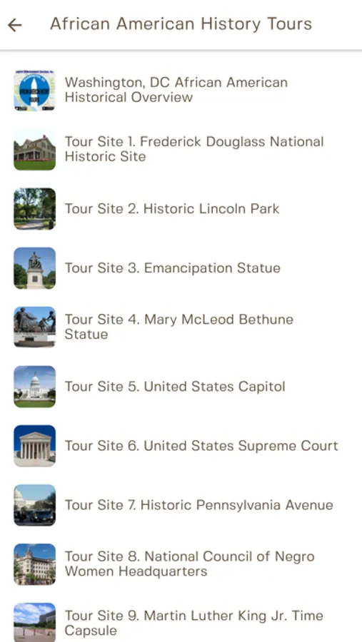 Take a driving or walking tour of Washington, D.C. using the "African American History Tours" app and experience a self-guided tour of the national monuments and memorials and many other historic tourist attractions highlighting African American History. The Washington, DC "African American History Tours" app includes the historical overview of Washington, DC African American history and 21 African American history tour audios and videos.