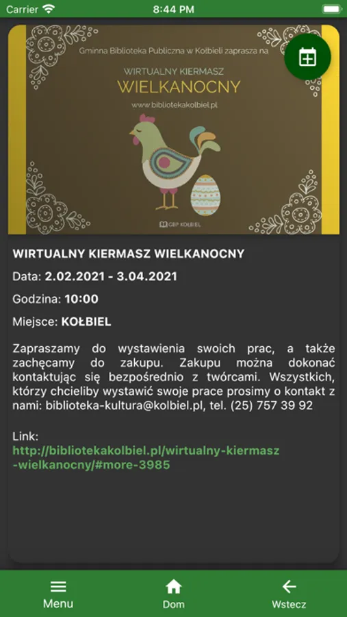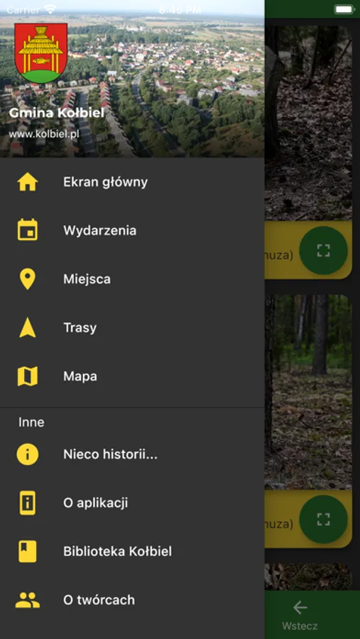 Aplikacja mobilna GMINA KOŁBIEL to interaktywny przewodnik po atrakcjach kulturalno - turystycznych Kołbieli. Aplikacja umożliwia nawigację tras do prezentowanych obiektów, przeglądanie opisów i zdjęć miejsc turystycznych oraz kalendarz aktualnych wydarzeń kulturalnych.