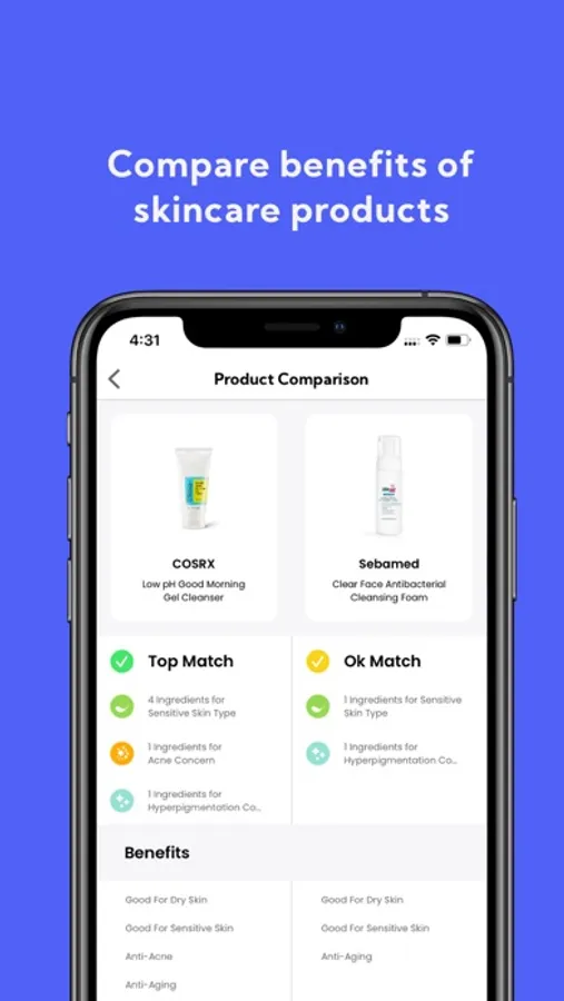 Look for skincare products with benefits and ingredients filter to find the right skincare products for you.
