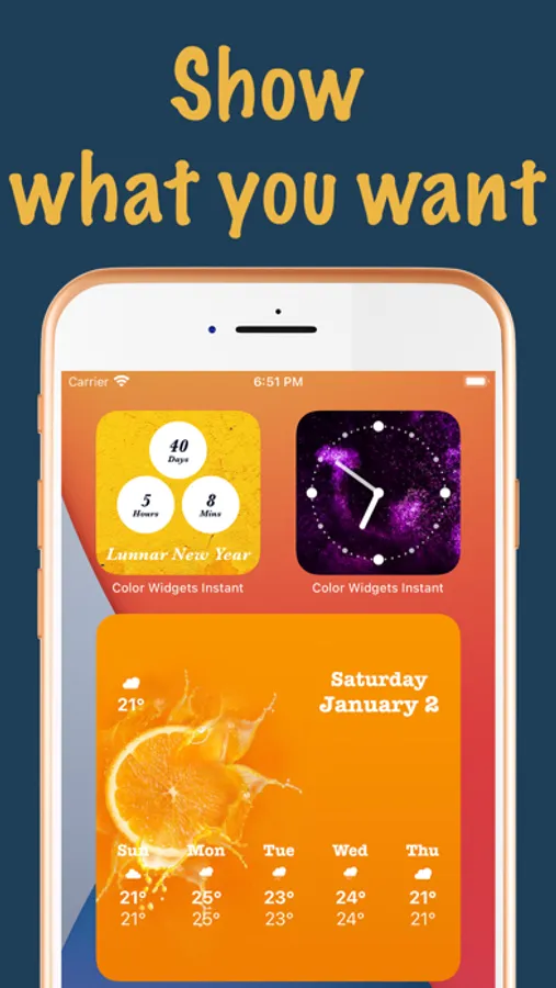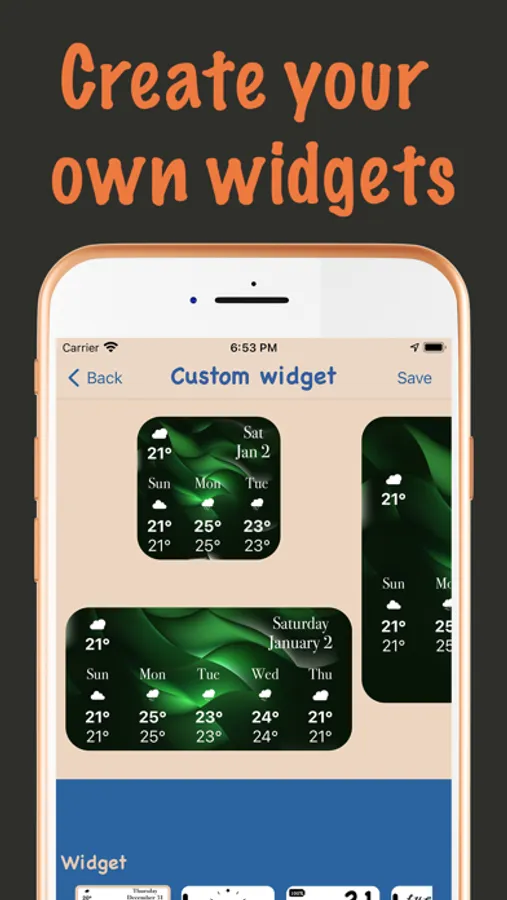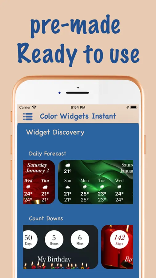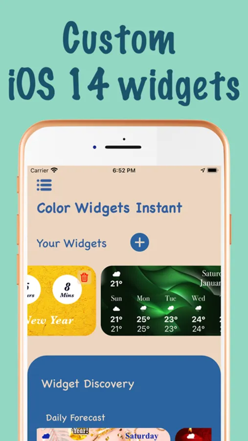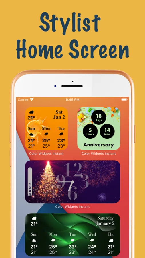 Color Widgets Instant contains a large set of good pre-made designs for weather, forecast, count-down, time, date, battery, calendar, photo collection, quotes and more. You can immediately use the design in second or better yet, make your own. This app provides powerful customization tools to make widgets on your Home Screen unique: