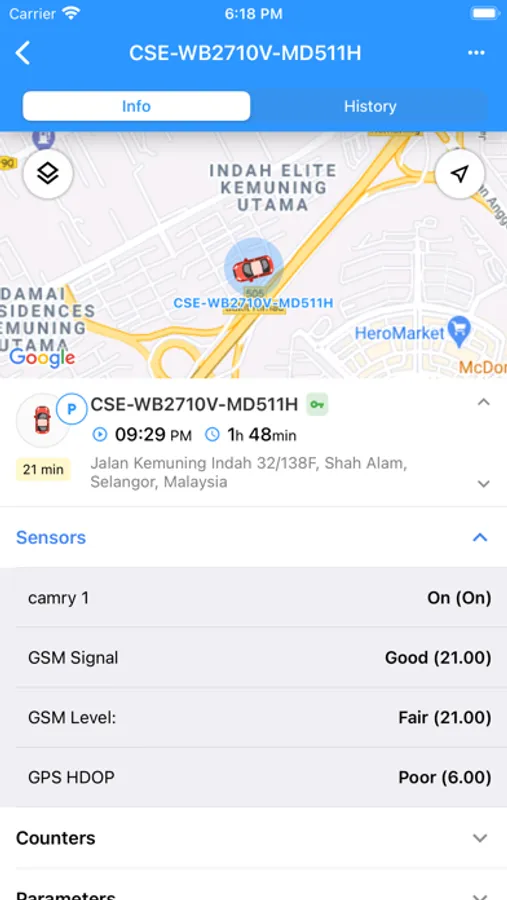 Tracking mode: Monitor precise location and parameters received from a particular unit.